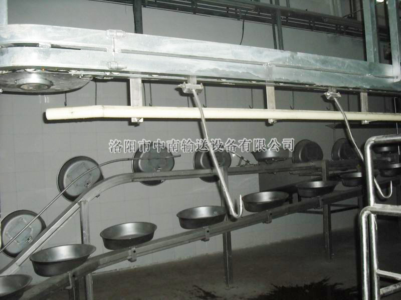 同步衛(wèi)檢線可分為:落地式和懸掛式。將屠體的頭、腸、胃、心、肝與胴體同步對好檢驗(yàn),紅臟與白臟懸掛在衛(wèi)檢線上,按設(shè)定的速度與胴體加工線同步運(yùn)行,由人工對內(nèi)臟進(jìn)行充分檢驗(yàn)檢疫,,這樣既保證了肉質(zhì)的衛(wèi)生質(zhì)量,又符合國家有關(guān)衛(wèi)生檢測標(biāo)準(zhǔn)。該設(shè)備運(yùn)行平穩(wěn),同步準(zhǔn)確,是屠宰加工中不可缺少的裝置之一。